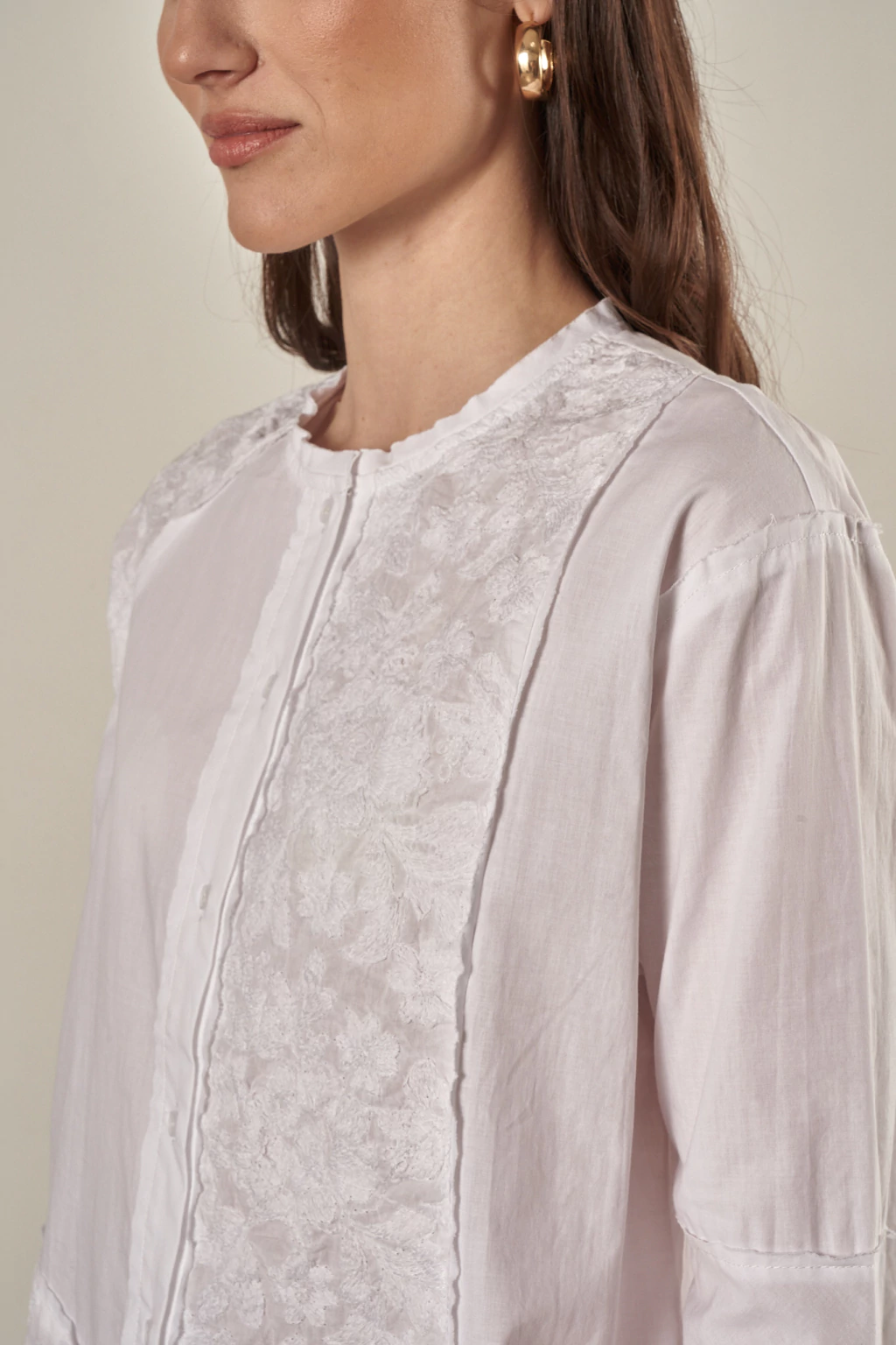 ¡Descubrí la elegancia y delicadeza de la K016-CAMISA CON ENCAJE, una prenda que aporta un toque femenino y sofisticado a tu guardarropa!
